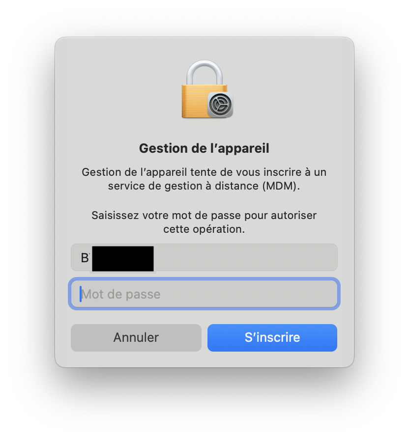 - Saisissez le mot de passe de votre Mac si cela est requis, puis cliquez sur S'inscrire.