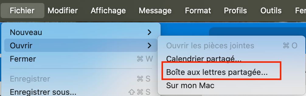 4. Sélectionner Boîte aux lettres partagée…